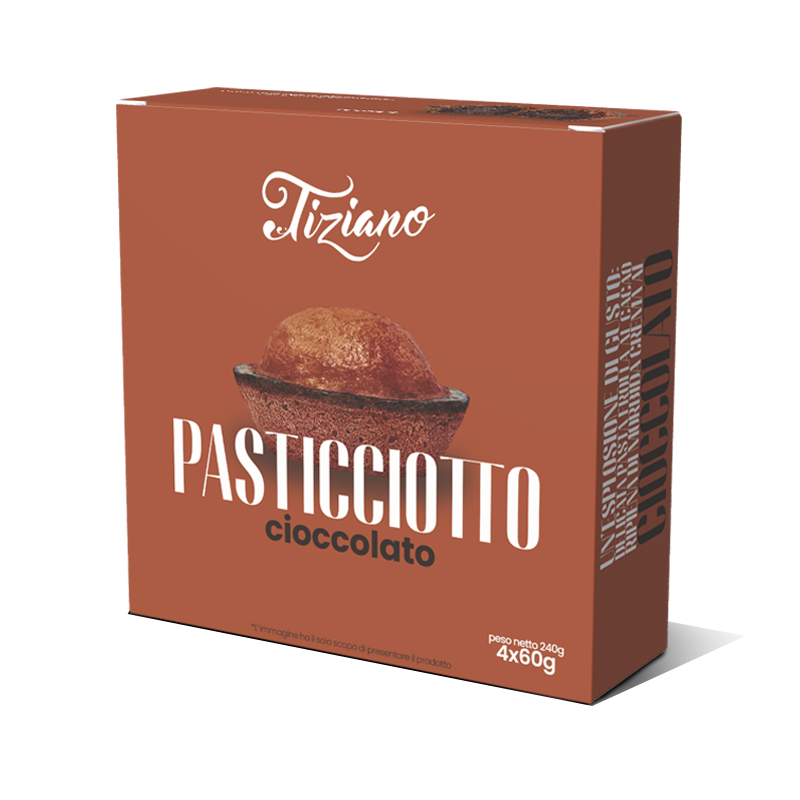 Farina 00, zucchero, acqua, strutto, uova, latte intero in polvere, burro, amido di mais, amido di riso, cacao in polvere 2%, agenti lievitanti: bicarbonato d’ammonio, sale, vanillina.